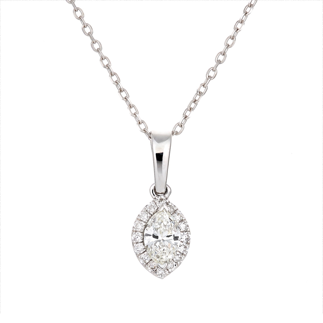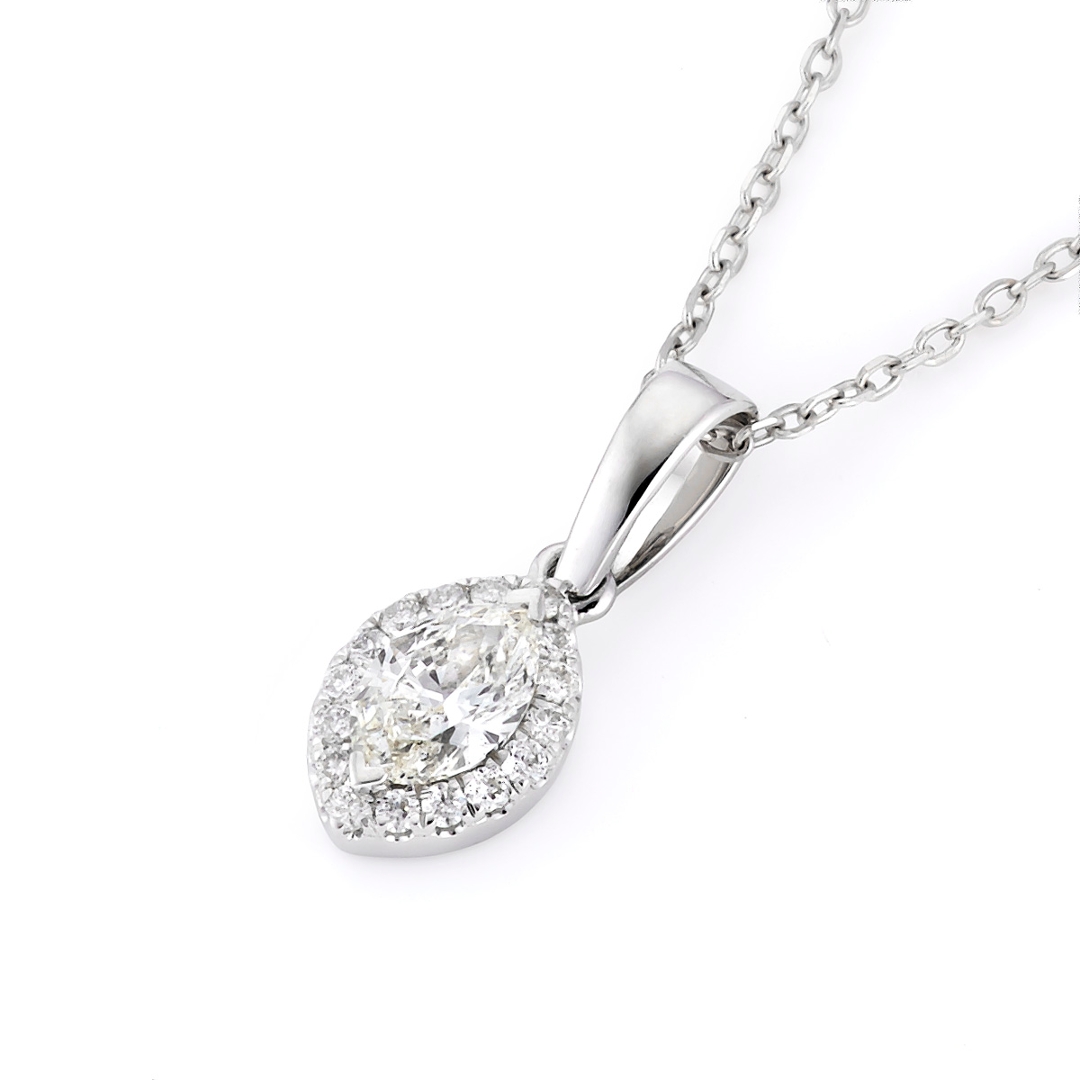 A brand-new, unused, certified natural diamond marquise-shaped cluster pendant, set with one marquise-cut diamond to the centre & a cluster of brilliant-cut diamonds in a halo setting, set in 18ct white gold.