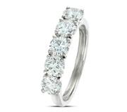 At the heart of this exquisite piece lies a captivating cluster of brilliant-cut diamonds totalling 0.61 carats, meticulously set to adorn the centre and shoulders of the ring. Each diamond, boasting a mesmerising G colour and SI1 clarity, exudes timeless brilliance and allure, creating a stunning focal point.