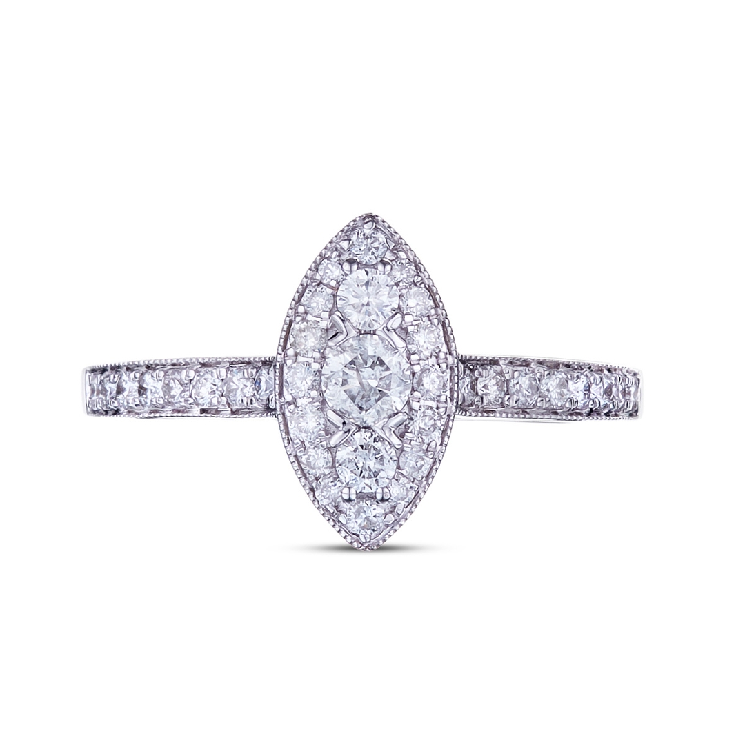 - > Natural Diamond Marquise Shaped Cluster Ring 0.61ct