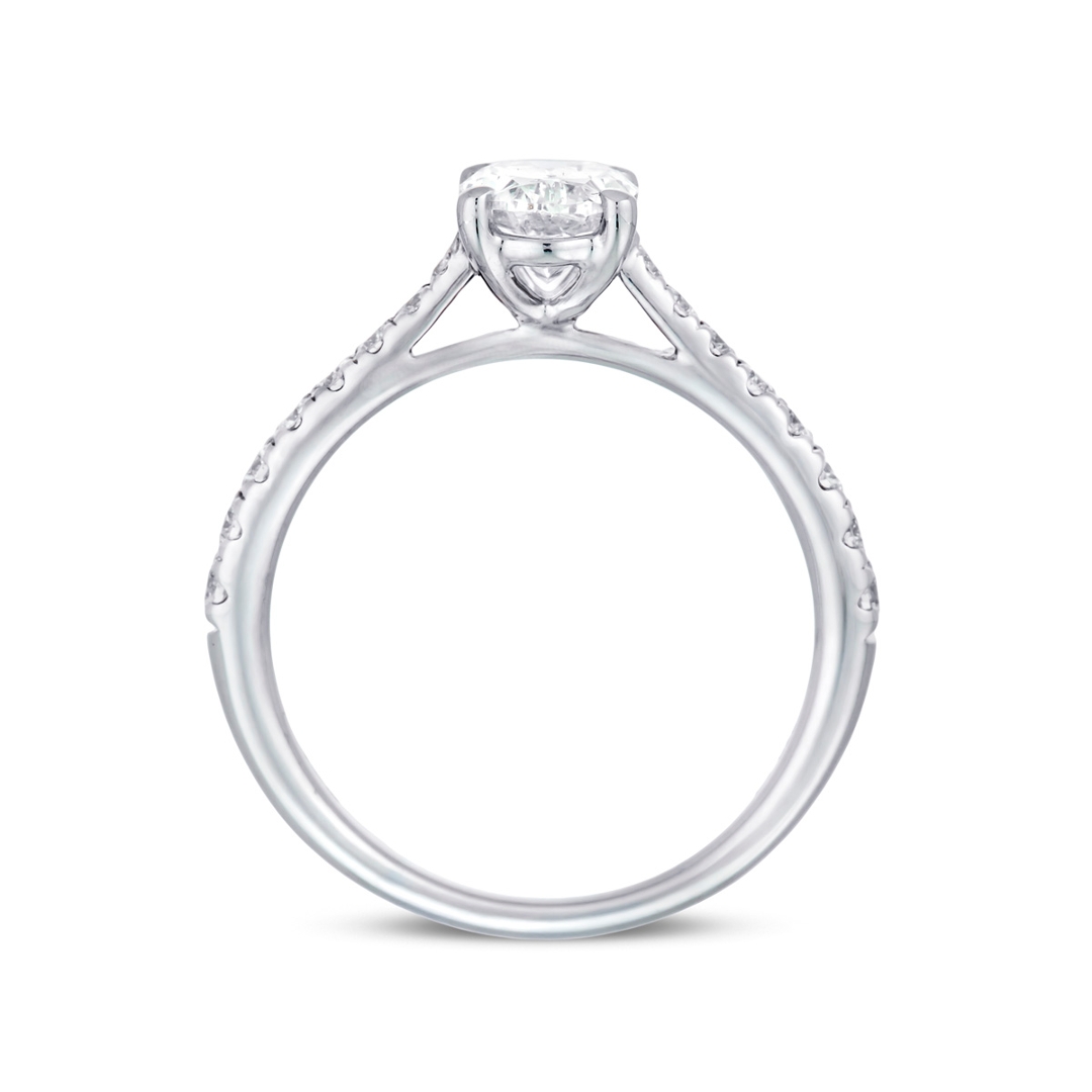 The 18ct white gold setting provides a sleek, contemporary finish, perfectly complementing the elongated oval-cut diamond to create a flattering, elegant profile on the hand. With a total weight of 3.45g, the ring has a reassuring presence while remaining comfortable for daily wear, and its timeless design ensures lasting desirability across changing trends.