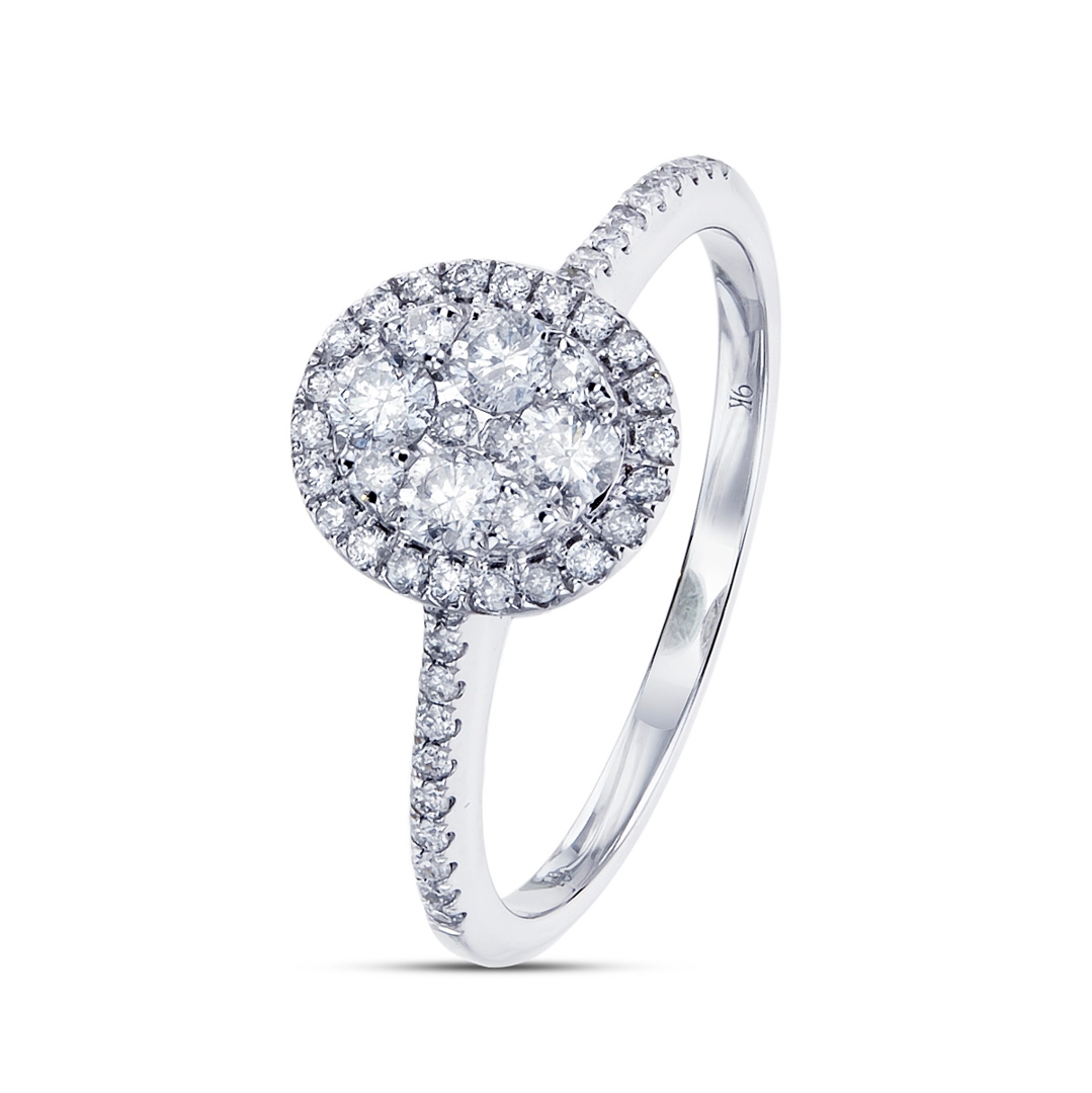 - > Natural Diamond Oval Shaped Cluster Ring 0.47ct