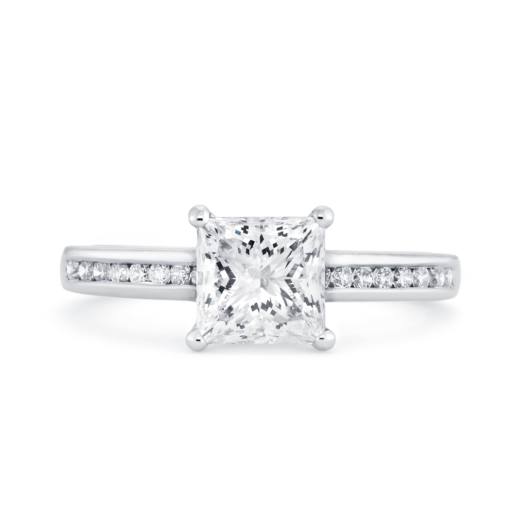 A brand-new, unused 18ct white gold diamond ring showcasing the timeless allure and enduring prestige of natural diamonds. At its heart sits a breathtaking 1.01-carat princess-cut natural diamond, exuding brilliance and fire from every angle. With an I colour grade and SI2 clarity, the central stone radiates the pure, captivating beauty that only a genuine earth-formed diamond can possess.