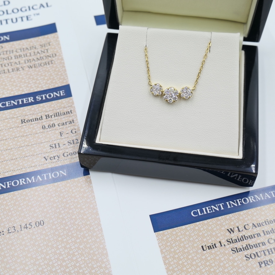 Weighing 3.73 grams. Valued at £3,145, this remarkable pendant captures sophistication in every detail. Its trio cluster formation reflects timeless craftsmanship and elegance, creating a piece destined to be cherished and admired for generations to come.