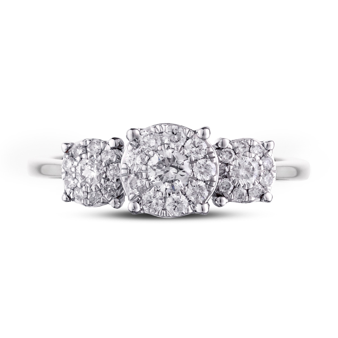 - > Natural Diamond Round Shaped Trio Cluster Ring 0.55ct