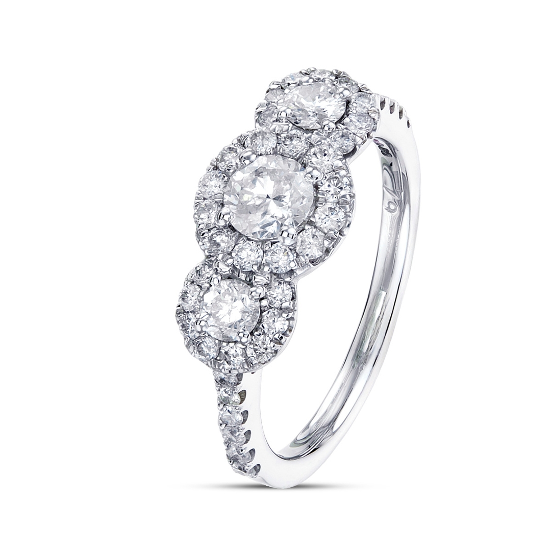 - > Natural Diamond Round Shaped Trio Cluster Ring 1.08ct