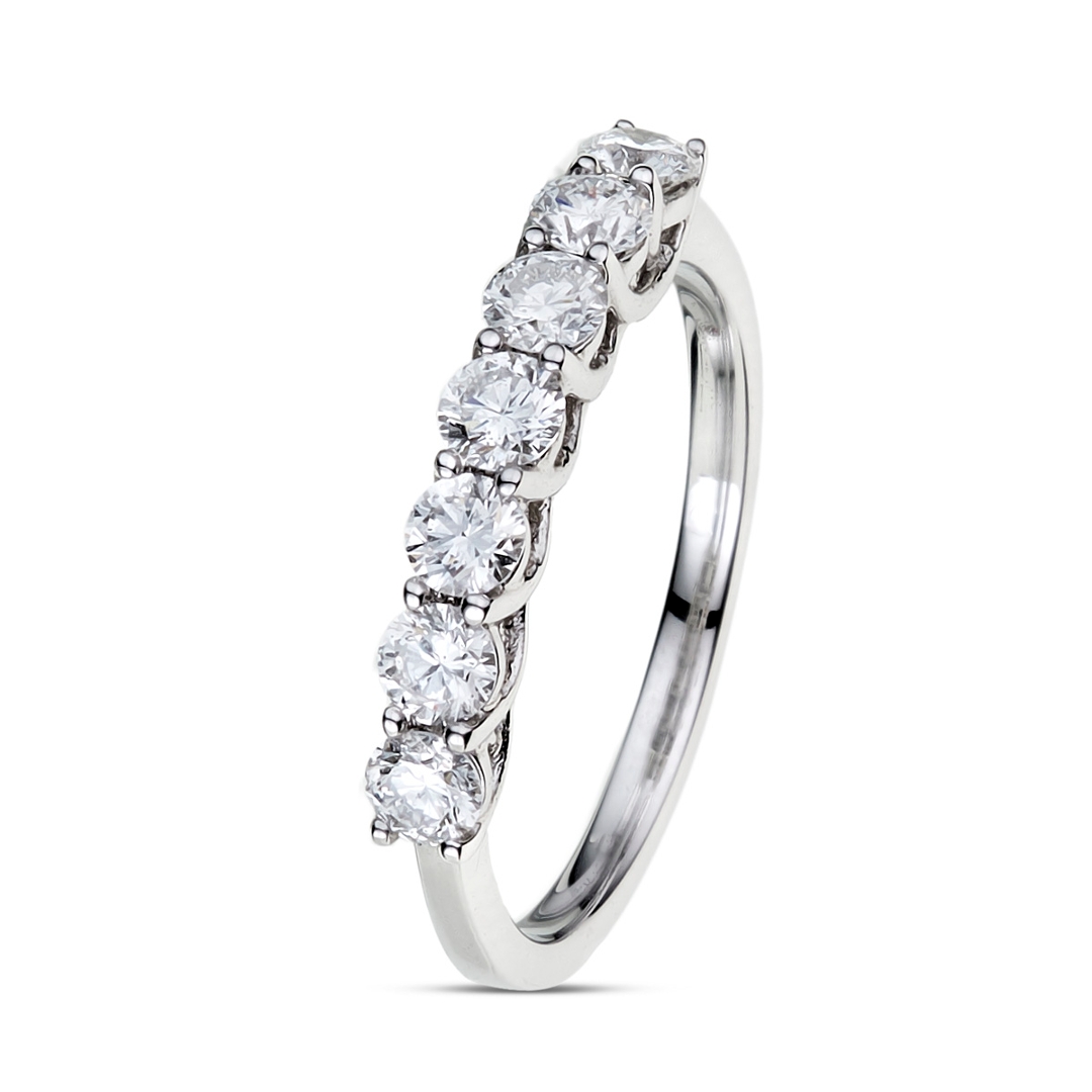 Natural diamonds are renowned for their exceptional beauty and rarity, and this ring sophisticatedly showcases these qualities. The seven brilliant-cut diamonds are carefully set to create a continuous sparkle flow, symbolising timeless love and commitment. The 18ct white gold setting enhances the diamonds’ natural radiance, providing a luxurious backdrop that elevates the overall design.