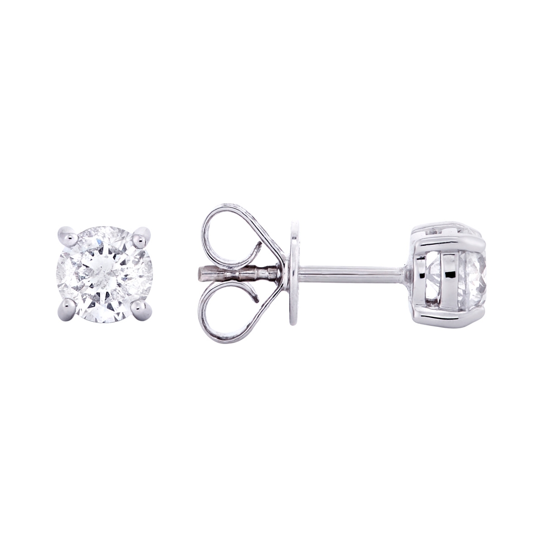 A brand new, unused certified pair of natural diamond solitaire earrings that epitomise timeless beauty, sophistication and brilliance. Each earring is set with a magnificent, brilliant-cut natural diamond, totalling an impressive 1.04 ct in combined weight. The diamonds are graded G–H in colour and SI1–SI2 in clarity, displaying exceptional sparkle, fire and balance — a true testament to expert selection and craftsmanship. The diamonds are securely mounted in 18ct white gold, whose sleek and luminous finish perfectly complements their radiant brilliance. With a total weight of 1.93 grams, these earrings offer an ideal combination of elegance, comfort and enduring quality, making them a refined statement of luxury and prestige.