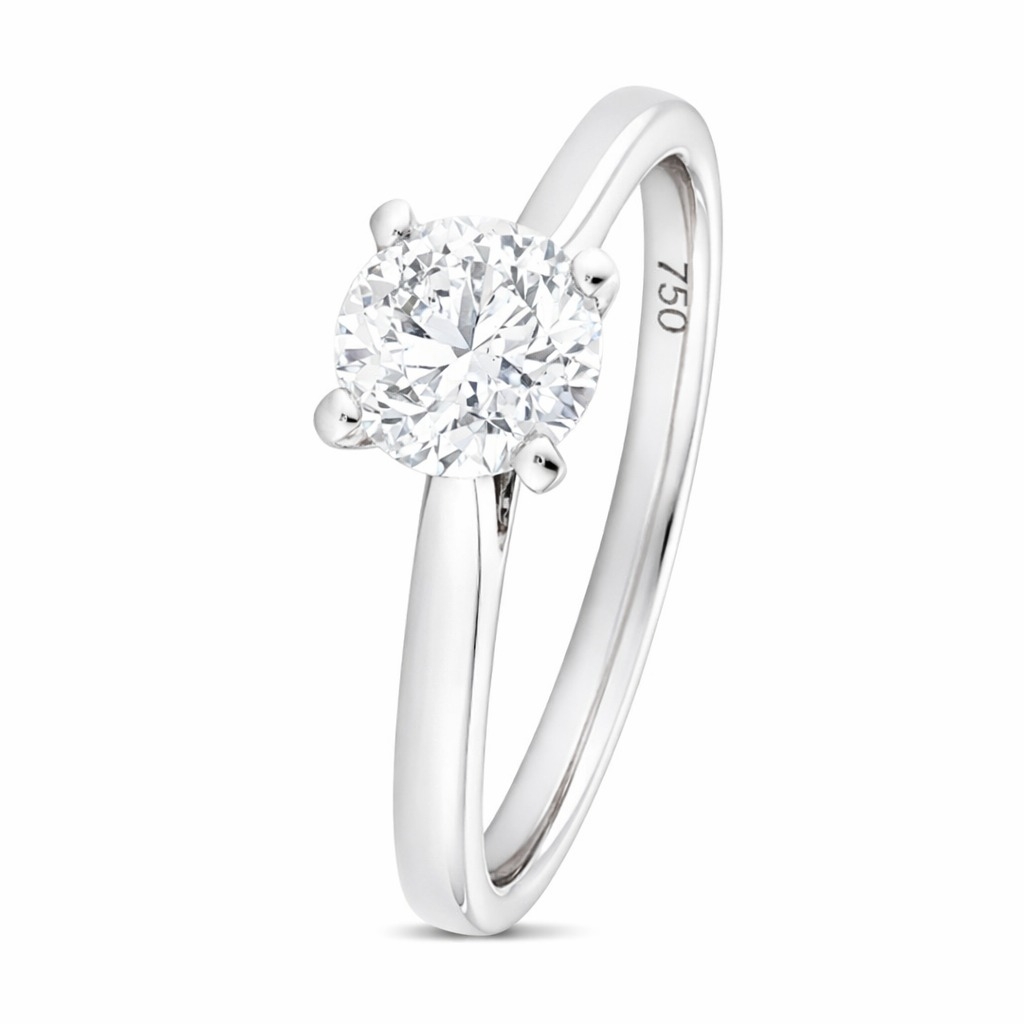 The classic solitaire design allows the diamond to take centre stage, highlighting its natural beauty and sparkle. The 18ct white gold band complements the diamond beautifully, creating a timeless and sophisticated look that will be treasured for a lifetime.