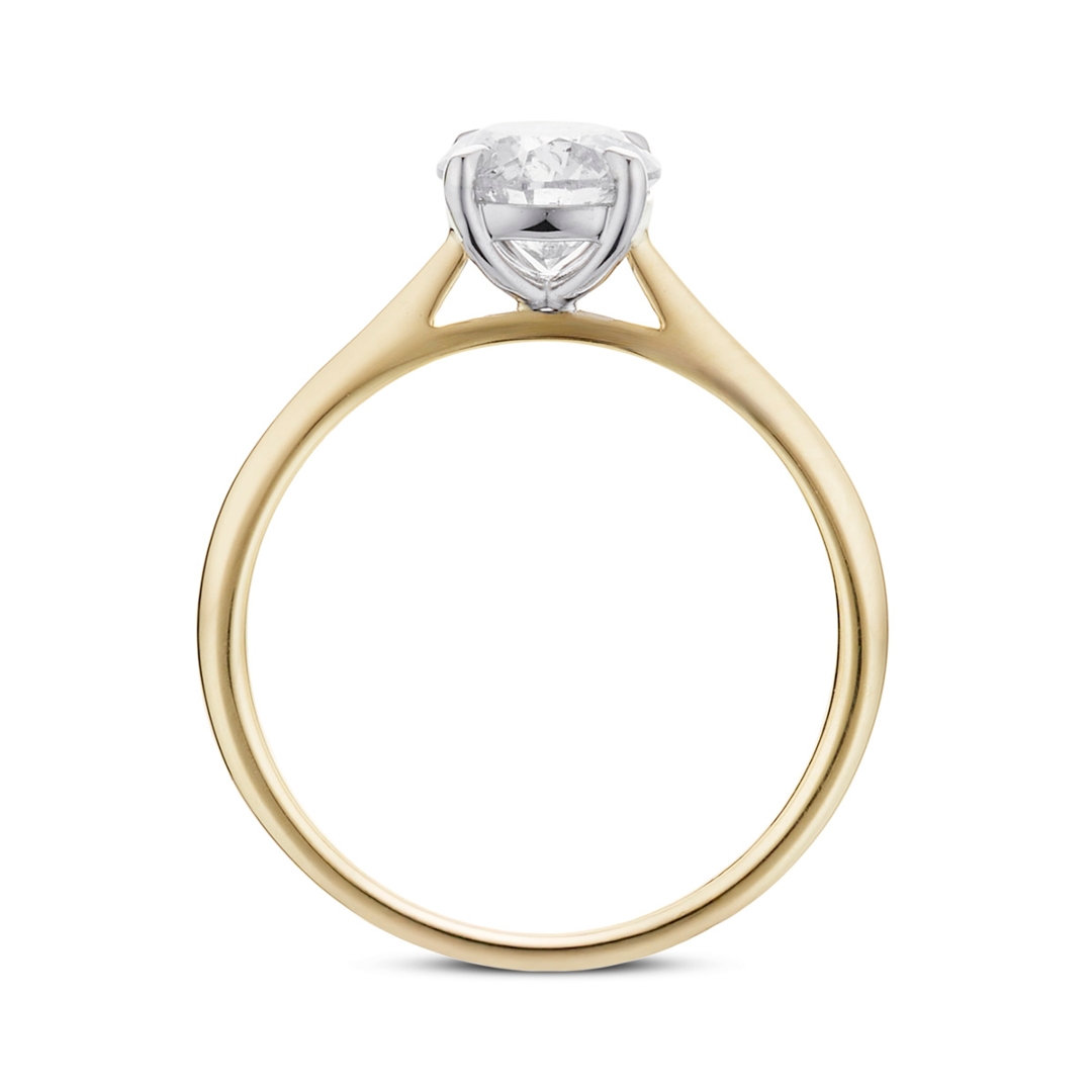 A brand new, unused, certified natural diamond solitaire engagement ring, with one brilliant cut diamond at the centre, set in 18ct yellow & white gold.