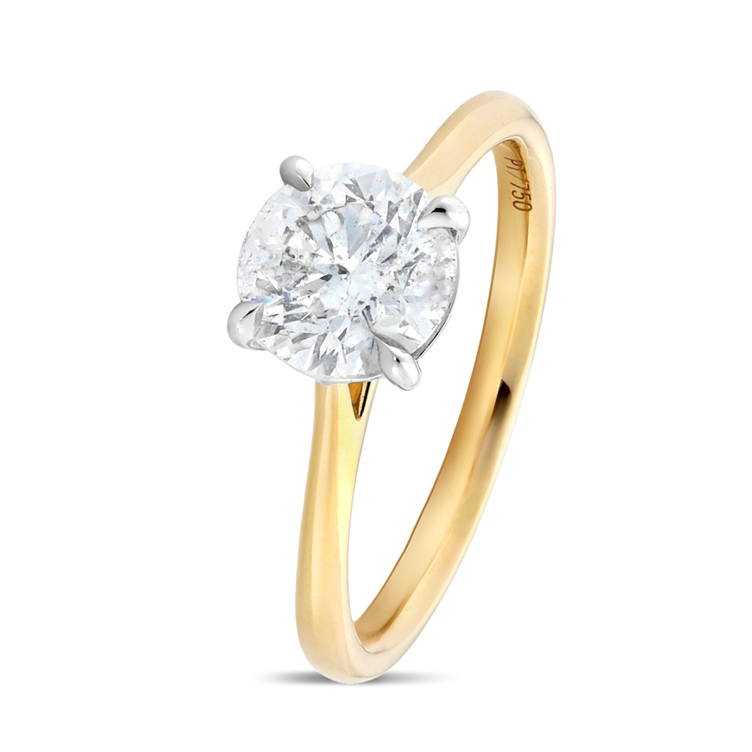 A brand-new, unused, certified natural diamond solitaire engagement ring, set with one brilliant cut diamond at the centre, set in platinum & 18ct yellow gold.