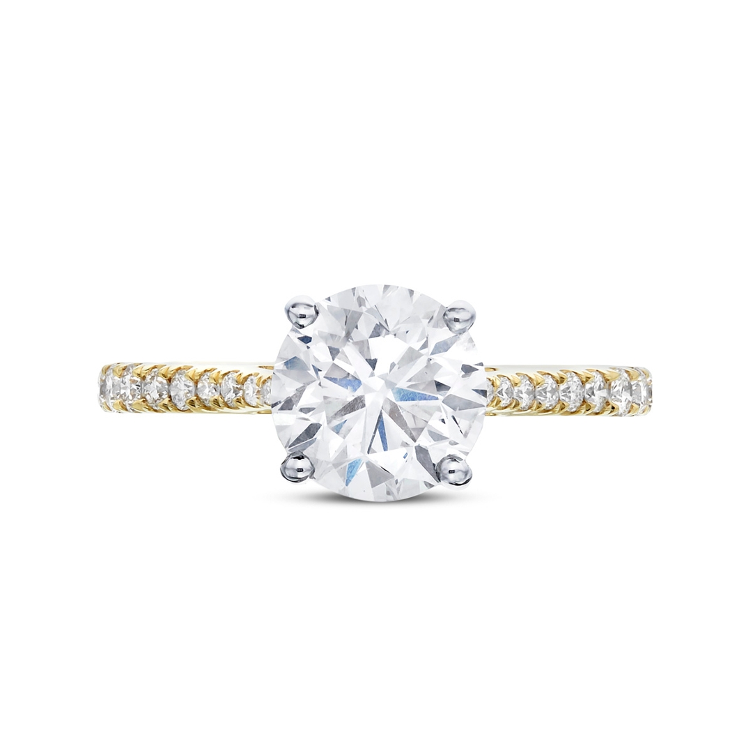 A brand-new, unused certified natural diamond solitaire engagement ring, crafted in a sophisticated combination of platinum and 18ct yellow gold, centred with a striking 2.02ct brilliant-cut diamond. Graded H colour and SI2 clarity, the centre stone offers a pleasing balance of warmth and brightness, delivering strong light performance and a confident presence that defines the piece's overall character.