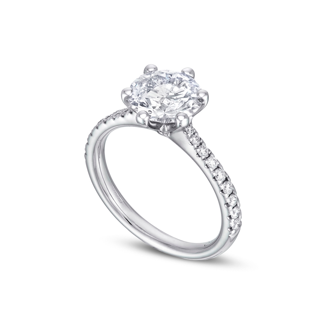 A brand-new, unused, certified natural diamond solitaire engagement ring, with one brilliant-cut diamond at the centre & a cluster of brilliant-cut diamonds to the shoulders, set in 18ct white gold.