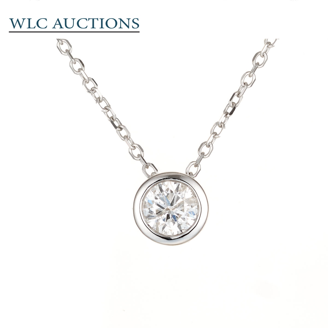 A brand-new, unused, certified 18ct white gold natural diamond solitaire pendant, set with one brilliant cut diamond.