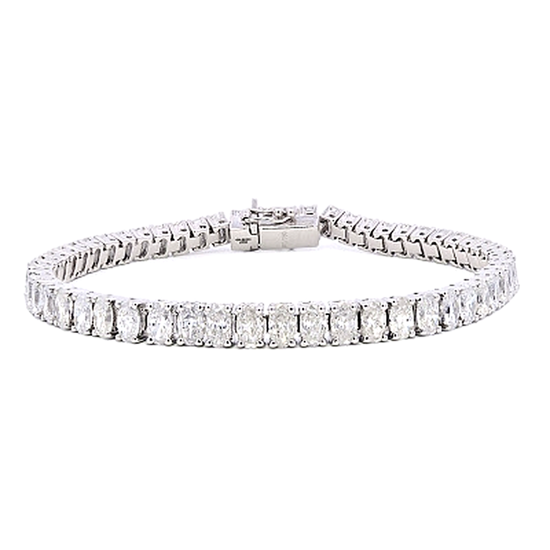 A brand-new, unused, certified natural diamond tennis bracelet, crafted to present exceptional presence, rarity and enduring value within a timeless design. This striking bracelet features a continuous cluster of oval-cut natural diamonds, expertly aligned to enhance brilliance, symmetry and fluid movement along the wrist. With an impressive total diamond weight of 12.01 carats, the oval cuts offer generous surface area and strong light performance, delivering a refined yet commanding visual impact.