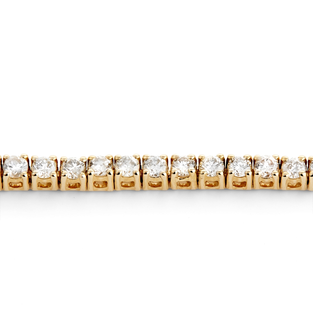 A brand-new, unused, certified natural diamond tennis bracelet, crafted in 9ct yellow gold and presented in pristine condition. The bracelet is set with a continuous cluster of brilliant-cut natural diamonds, totalling 2.02 carats, graded G–H in colour and SI1 clarity. The diamonds are carefully matched to create an even, uninterrupted line of sparkle, while the warm tone of yellow gold adds classic contrast and visual depth. With a total weight of 5.73 grams, the bracelet offers a reassuring feel on the wrist while maintaining a refined and timeless profile suitable for both everyday wear and formal occasions.