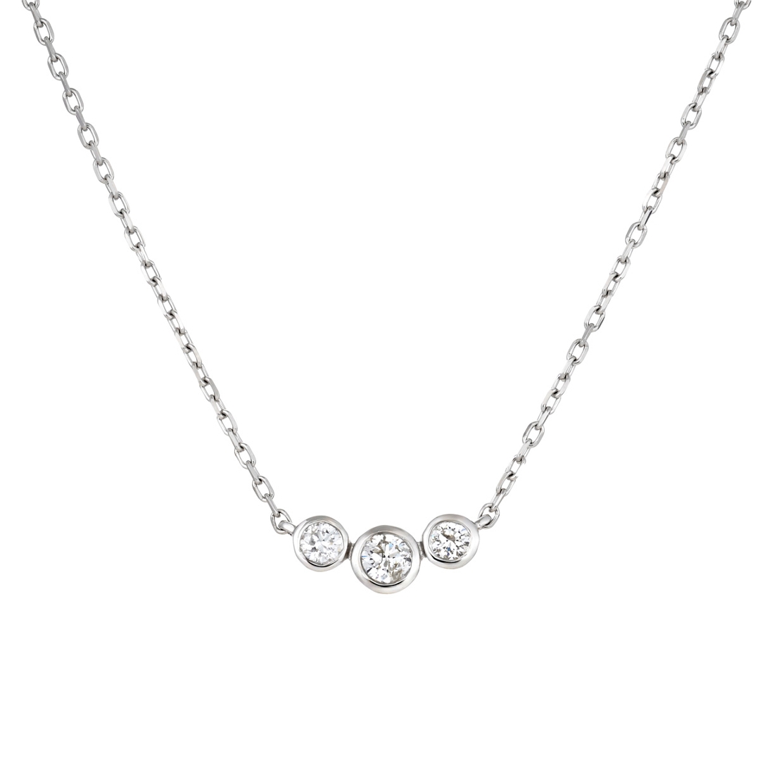 A brand-new, unused, certified natural diamond three-stone cluster pendant, set with three brilliant cut diamonds, set in 18ct white gold.