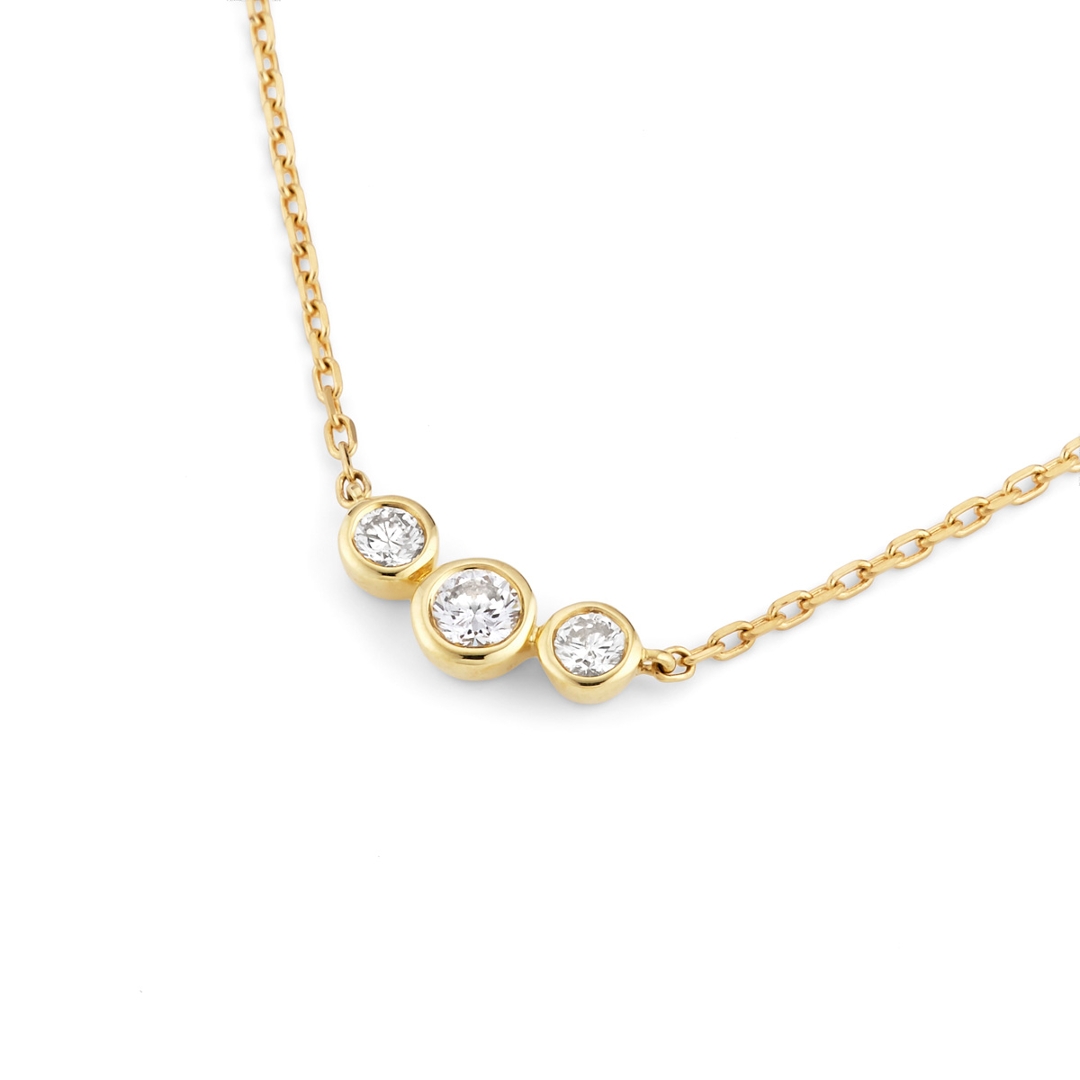 A brand-new, unused, certified natural diamond three-stone cluster pendant, set with three brilliant cut diamonds, set in 18ct yellow gold.