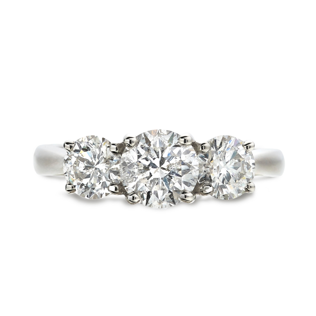 A brand new, unused certified natural diamond three-stone eternity ring that embodies timeless beauty, elegance and symbolic meaning. This exquisite piece features three brilliant-cut natural diamonds, totalling 2.02ct, representing the past, present and future of everlasting love. Each diamond is graded F–G in colour and SI1–SI2 in clarity, chosen for its superb brightness, balance and fire. The trio of stones radiates an extraordinary brilliance, each one reflecting light with captivating precision. Expertly crafted in platinum—the most durable and prestigious of precious metals—the setting enhances the diamonds’ natural sparkle while providing a sleek, enduring foundation for everyday elegance. With a professional valuation of £7,150, this ring exemplifies fine craftsmanship and refined sophistication.