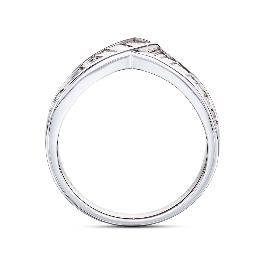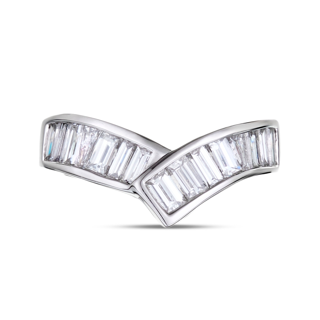Set in lustrous platinum, renowned for its exceptional durability and purity, this ring strikes the perfect balance between timeless elegance and modern sophistication. The delicate wishbone design adds a touch of whimsy and charm, making it a versatile accessory for both formal occasions and everyday wear.