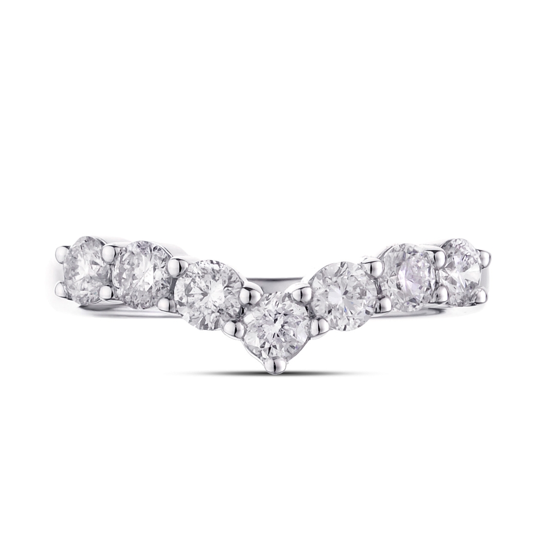 A brand-new, unused, certified natural diamond wishbone eternity ring that beautifully combines timeless style with radiant sophistication. This elegant design features seven brilliant-cut natural diamonds, together weighing 1.04 carats, each carefully chosen for its exceptional sparkle and balance. Graded G–H in colour and SI1–SI2 in clarity, the diamonds radiate pure brilliance, their natural fire enhanced by the flowing wishbone silhouette that symbolises good fortune, love, and everlasting unity. Each diamond has been expertly set to capture and reflect light with dazzling intensity, showcasing the authenticity and enduring beauty that only natural diamonds possess.
