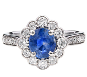 - > Natural Emerald 0.37ct & Diamond 0.56ct Boat Shaped Cluster Ring