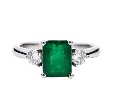 - > Natural Emerald 1.58ct & Diamond 0.30ct Three Stone Cluster Ring