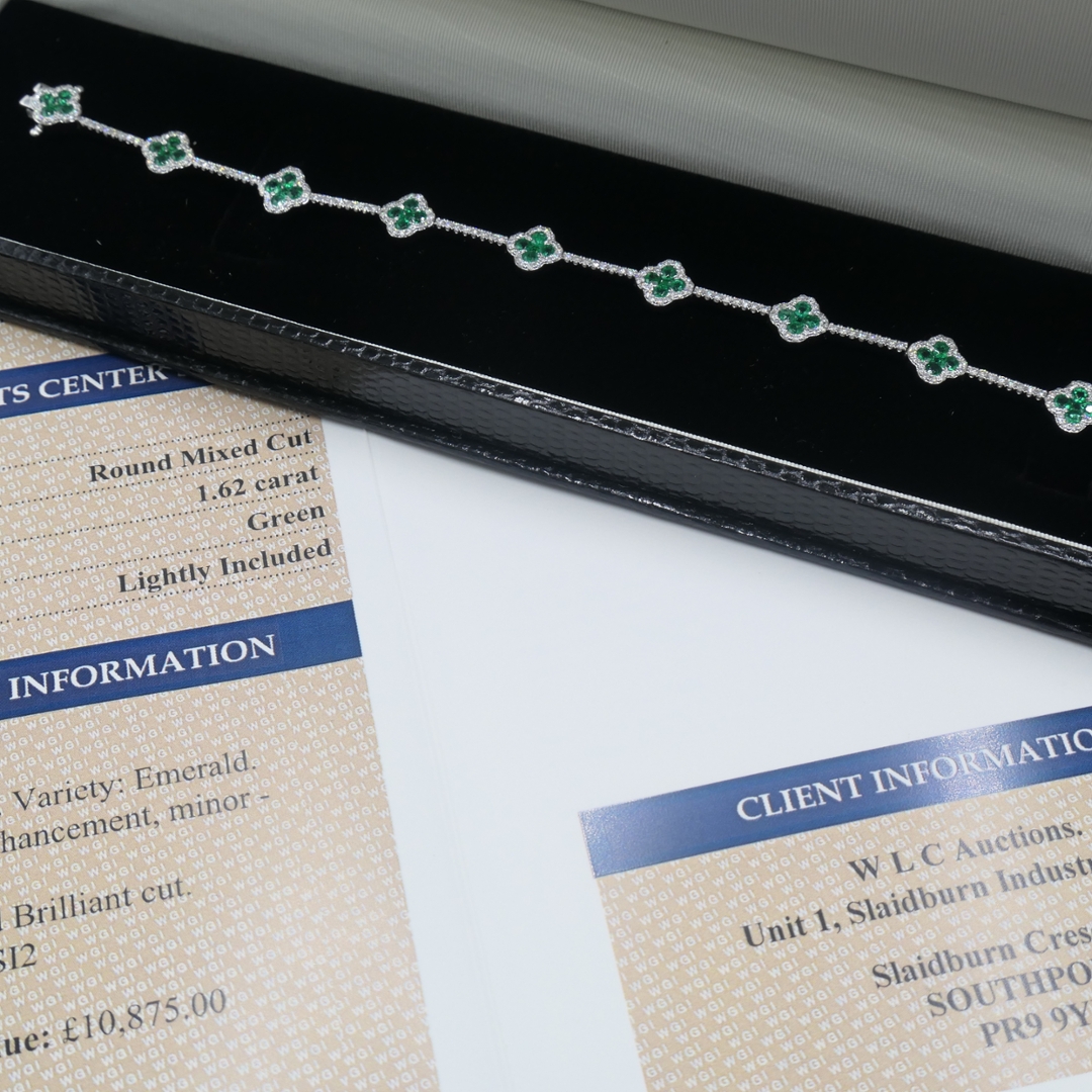 Emeralds, one of the most celebrated gemstones in history, are admired for their distinctive green colour and association with renewal and harmony. Their natural inclusions, often called the stone’s “jardin,” give each gem individuality and character. When combined with the timeless brilliance of diamonds, this bracelet becomes a piece of jewellery that reflects both elegance and enduring natural beauty. The craftsmanship of the white gold setting further enhances the stones' radiance, ensuring a luxurious finish.