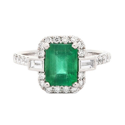 - > Natural Emerald 1.67ct & Diamond 0.67ct Emerald Shaped Cluster Ring