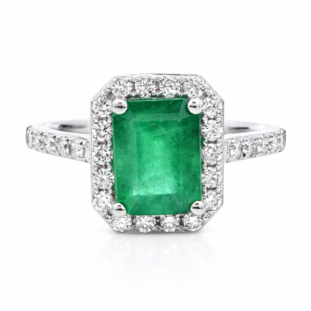 A brand-new, unused, certified natural diamond and emerald emerald-shaped cluster ring, centred with a striking 1.81ct emerald-cut emerald of vibrant green hue and impressive presence. The clean, elongated facets of the emerald-cut showcase the gemstone’s natural character and depth of colour, offering a refined, architectural elegance that remains eternally sophisticated. Its bold yet graceful proportions make it an exceptional focal point, perfectly suited to those who appreciate distinctive fine jewellery.