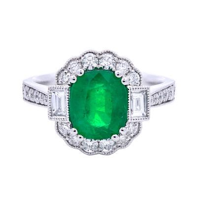- > Natural Emerald 2.02ct & Diamond 0.65ct Cluster Ring