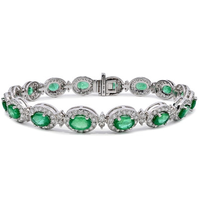 - > Natural Emerald 6.91ct & Diamond 3.32ct Oval Shaped Cluster Bracelet