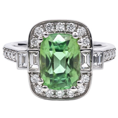 - > Natural Mint Tourmaline 2.27ct & Diamond 0.66ct Cushion Shaped Cluster Ring