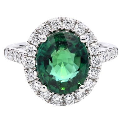 - > Natural Mint Tourmaline 3.07ct & Diamond 0.74ct Oval Shaped Cluster Ring