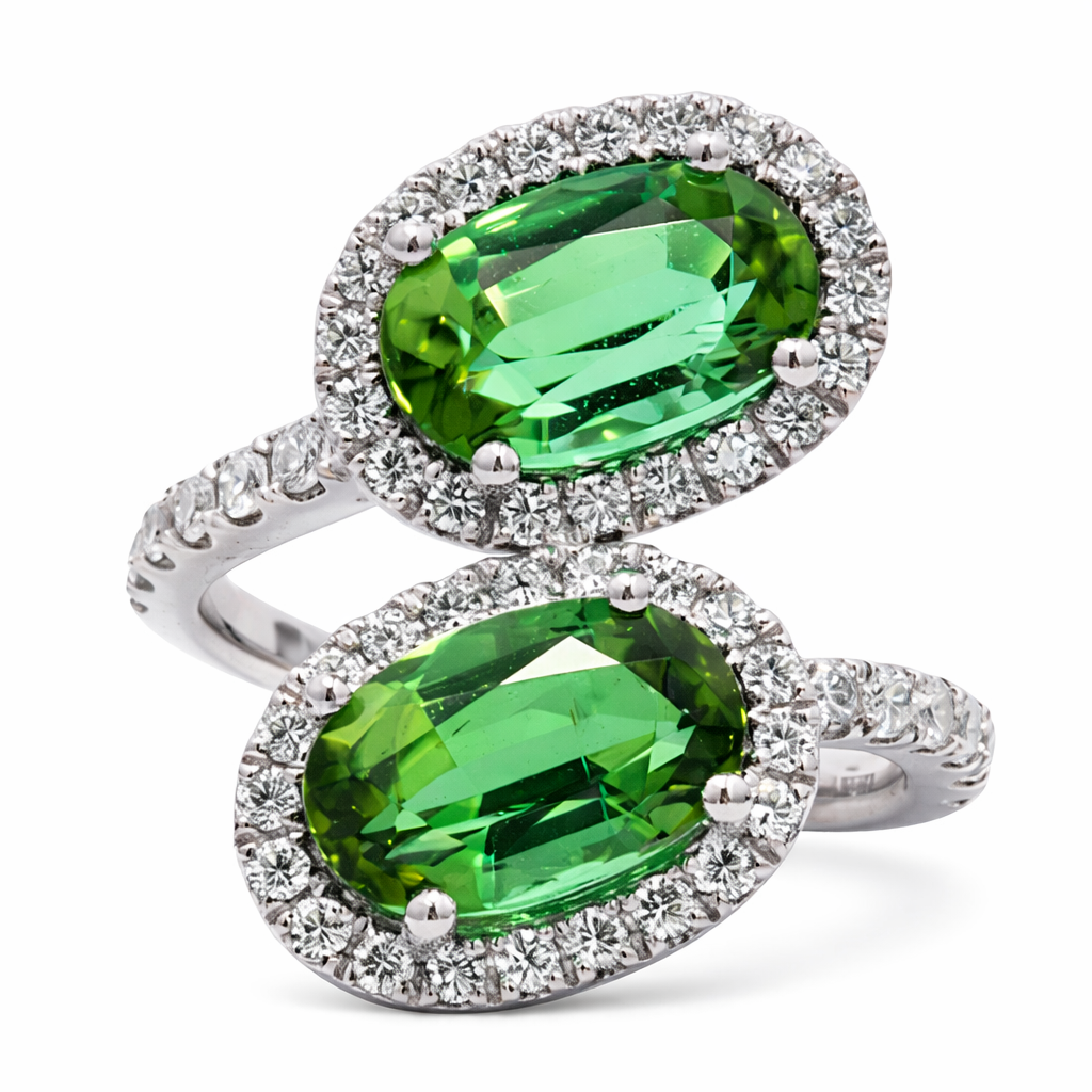 - > Natural Mint Tourmaline 4.56ct & Diamond 0.67ct Oval Cut Toi et Moi Cluster Ring