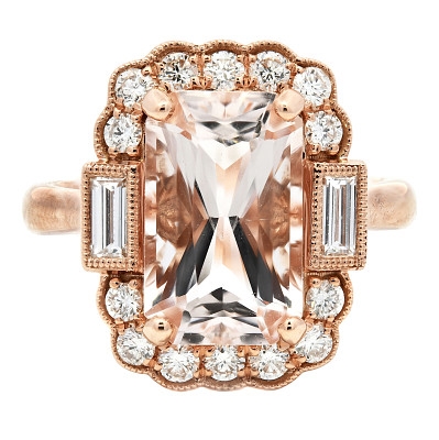 The combination of substantial morganite weight and natural diamond accents offers both visual impact and long-term appeal. Crafted in rich 18ct rose gold, this ring offers collectors an attractive opportunity for beauty and investment potential.