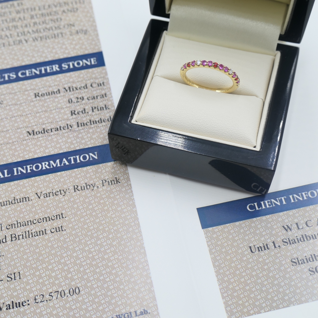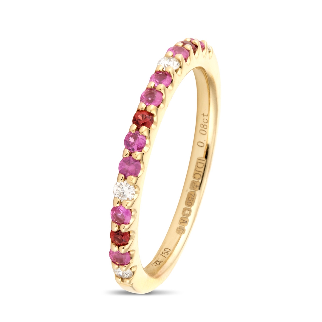 Natural Multi Coloured Ruby & Sapphire 0.29ct & Diamond 0.08ct Eternity Ring