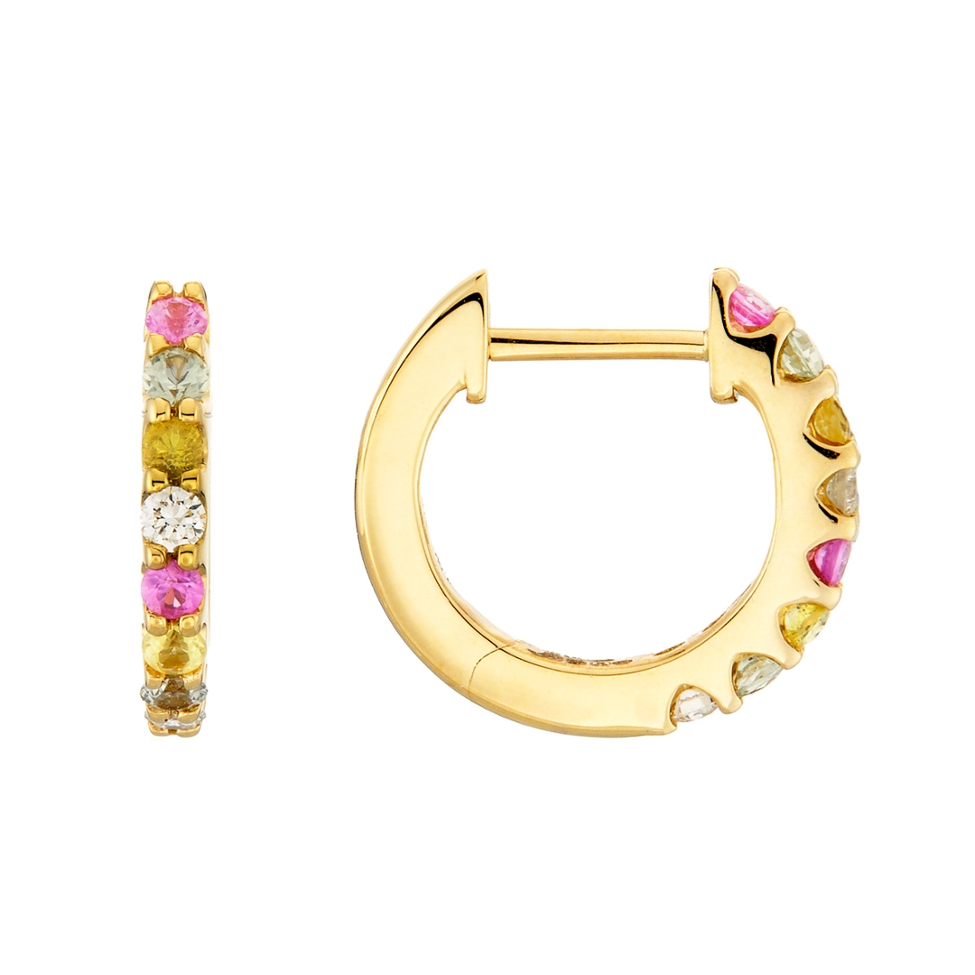 - > Natural Multi-Coloured Sapphire 0.35ct & Diamond 0.08ct Hooped Earrings