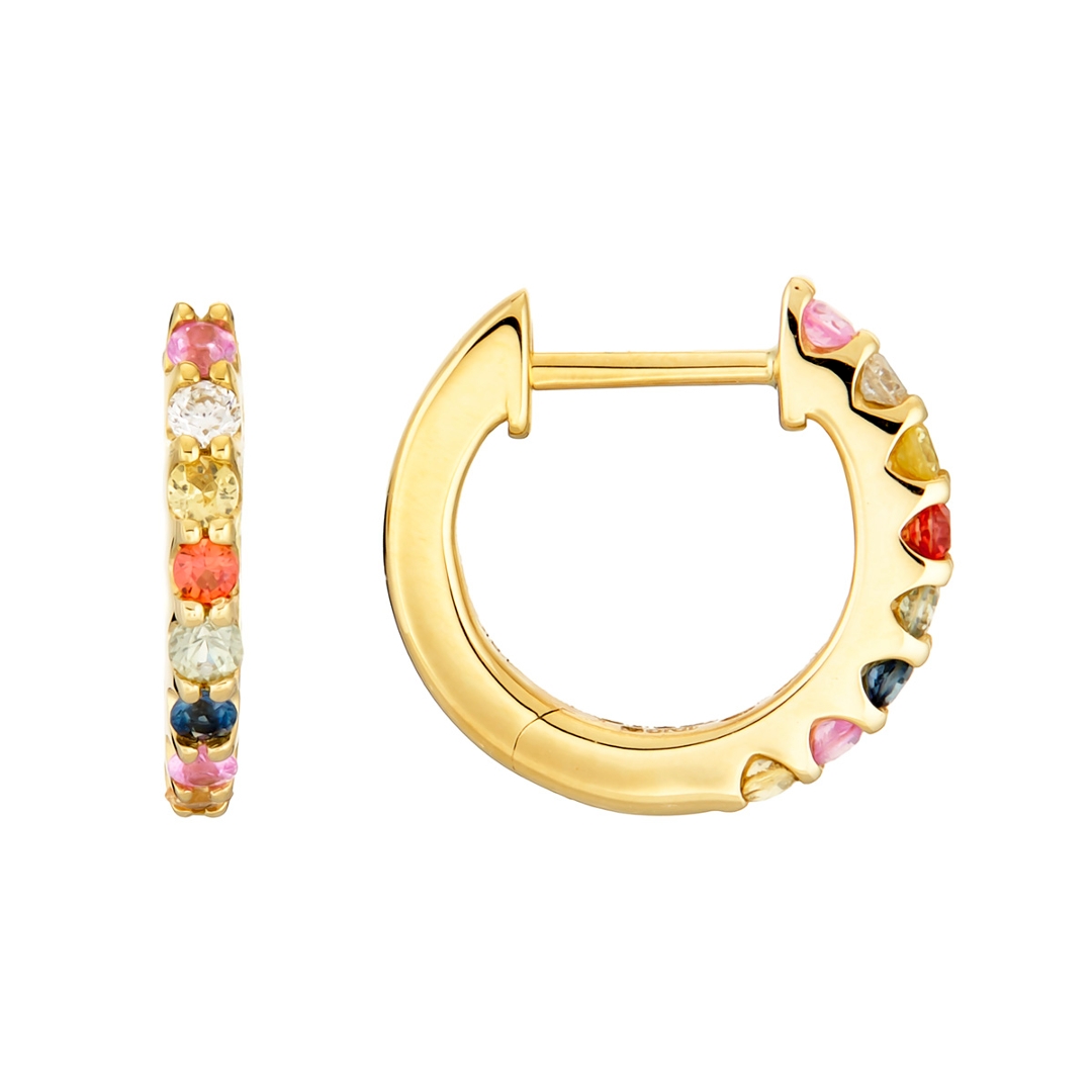 - > Natural Multi-Coloured Sapphire 0.38ct & Diamond 0.04ct Hooped Earrings