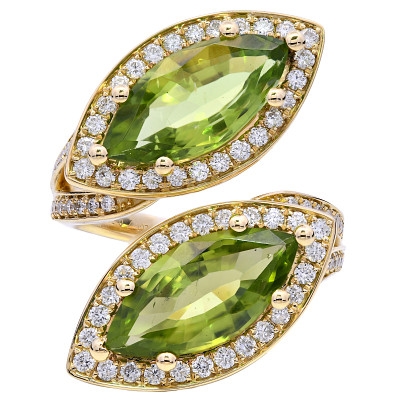 - > Natural Peridot 5.40ct & Diamond 0.73ct Toi et Moi Cluster Ring
