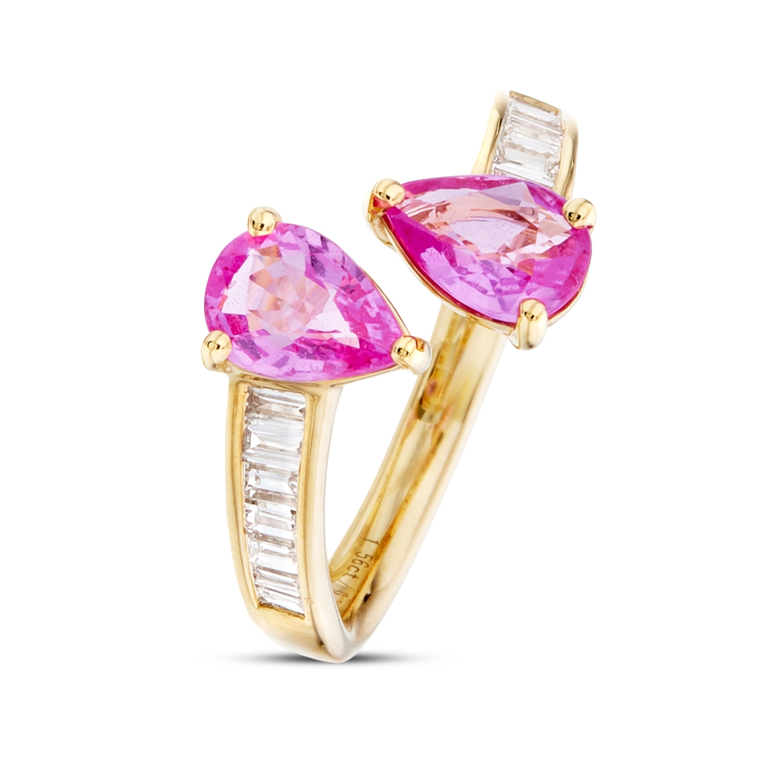 - > Natural Pink Sapphire 1.56ct & Diamond 0.33ct Pear Cut Toi et Moi Ring