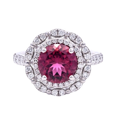 - > Natural Pink Tourmaline 1.90ct & Diamond 0.65ct Round Shaped Cluster Ring