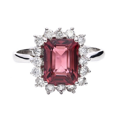 - > Natural Pink Tourmaline 2.08ct & Diamond 0.43ct Cluster Ring