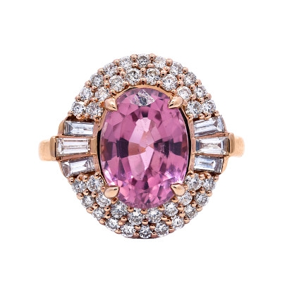- > Natural Pink Tourmaline 3.13ct & Diamond 0.81ct Oval Shaped Cluster Ring
