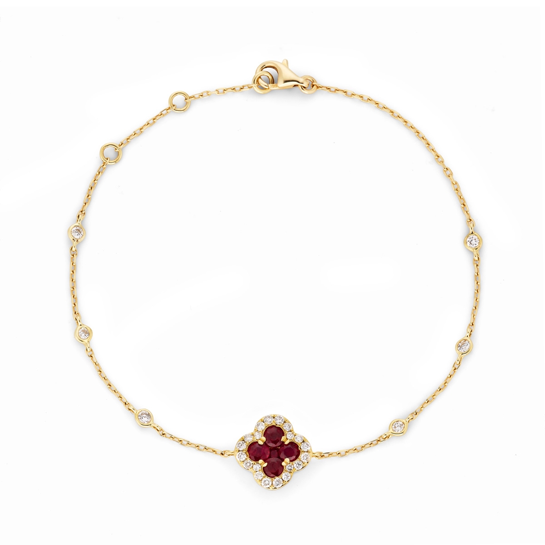 - > Natural Ruby 0.64ct & Diamond 0.37ct Clover Shaped Chain Bracelet