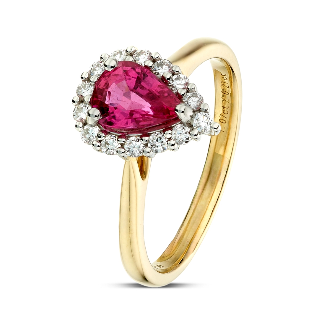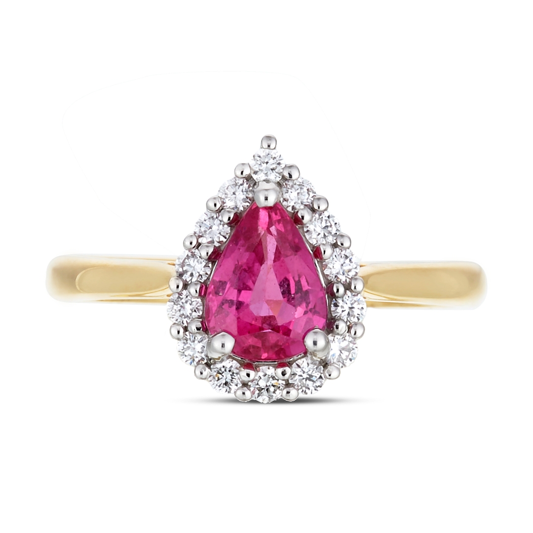 - > Natural Ruby 1.07ct & Diamond 0.21ct Pear Shaped Cluster Ring