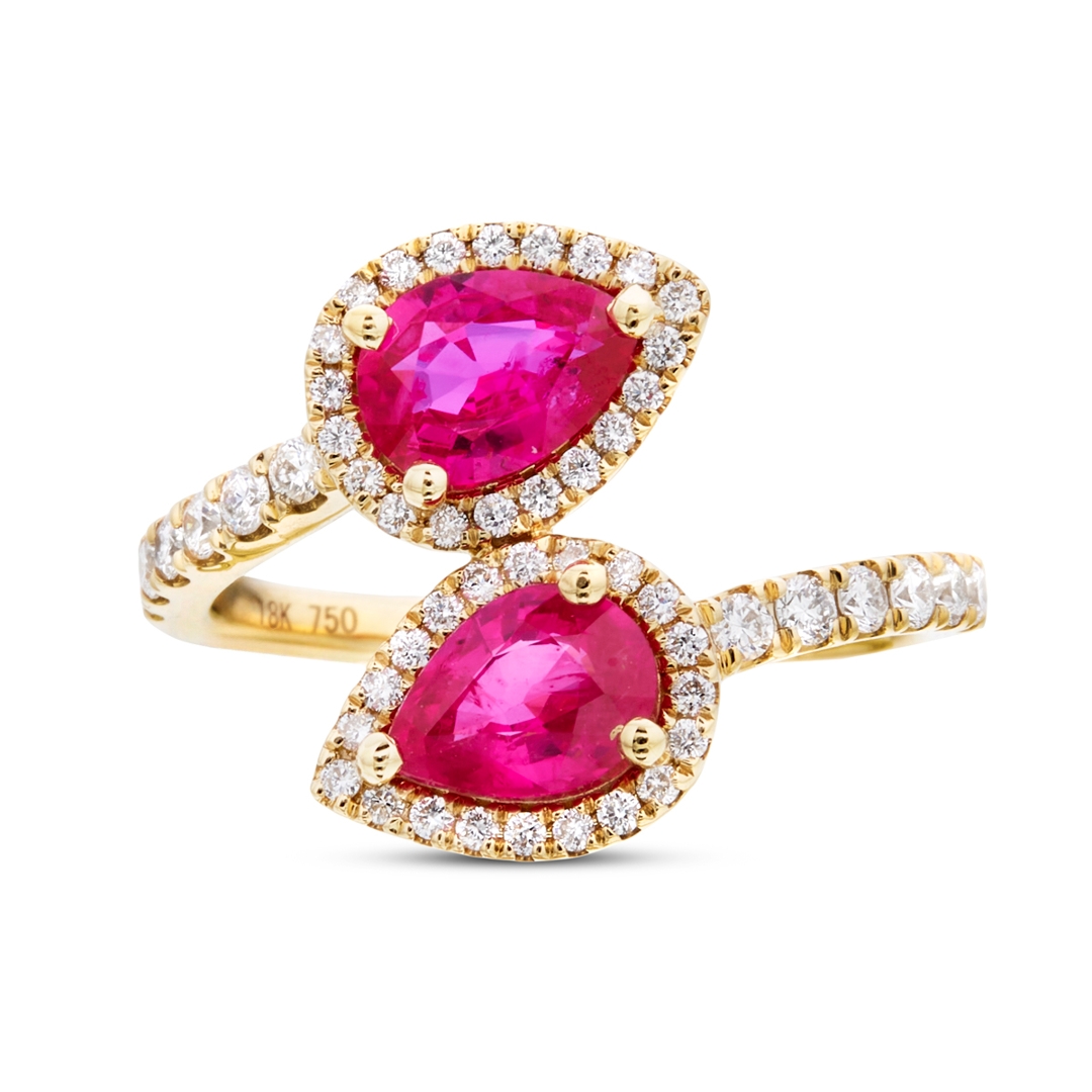 - > Natural Ruby 1.31ct & Diamond 0.38ct Pear Shaped Toi et Moi Ring