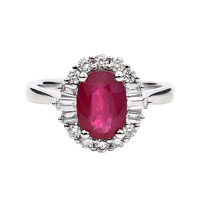 - > Natural Ruby 1.38ct & Diamond 0.37ct Oval Shaped Cluster Ring