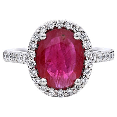 - > Natural Ruby 1.83ct & Diamond 0.49ct Oval Shaped Cluster Ring