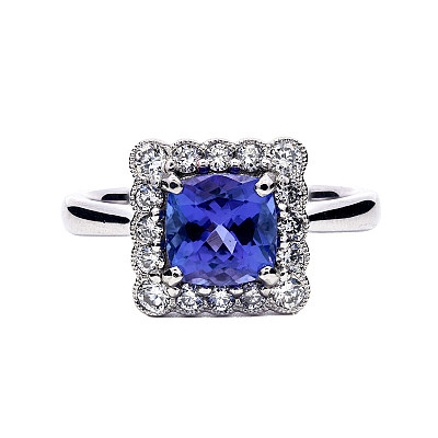 - > Natural Tanzanite 1.29ct & Diamond 0.35ct Cushion Shaped Cluster Ring