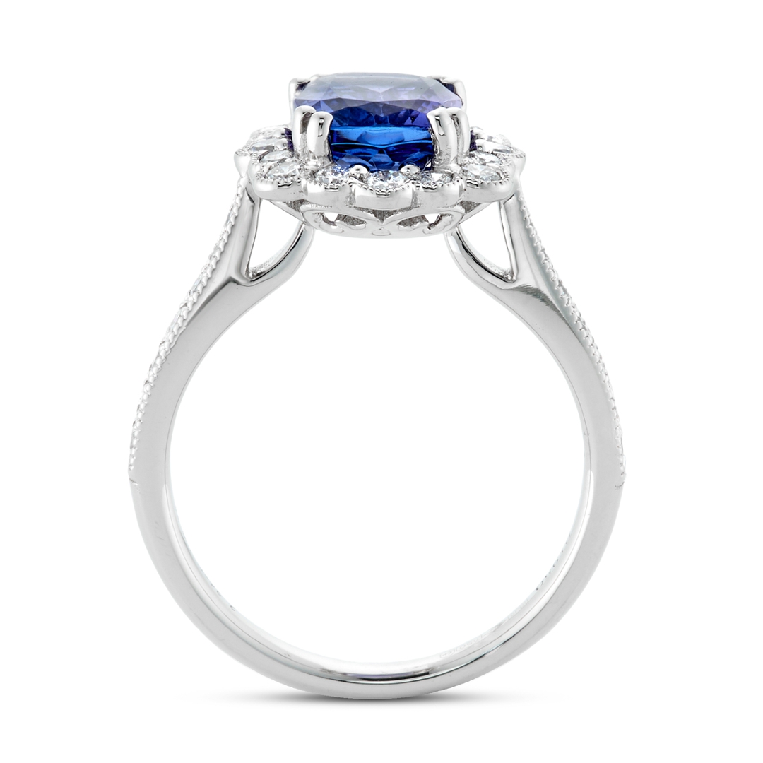 Accompanied by a professional valuation of £5,320, this certified platinum tanzanite and diamond cluster ring is not only a magnificent piece of fine jewellery but also a superb investment. The enduring desirability of natural diamonds and the rarity of tanzanite make this an exceptional treasure to be cherished for generations.